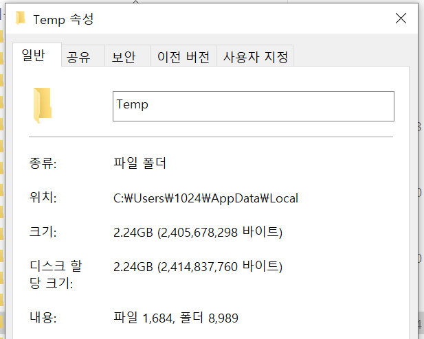 경로 : C:\Windows\Temp