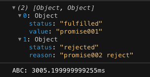 Promise.allSettled() 함수의 특징은 전달된 Promise에서 거부(reject)되었는지 여부에 관계없이 해결된 Promise를 반환한다는 것입니다.